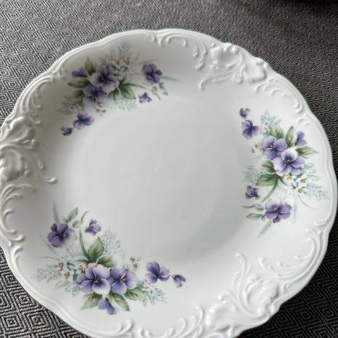 Dette er et klassisk stykke europeisk porselen som passer perfekt til selskapsbordet, enten til servering av kaker, smørbrød eller som et dekorativt innslag i samlingen.