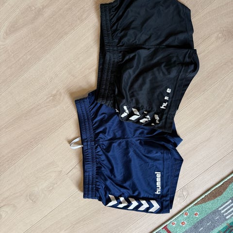 Hummel shorts i størrelse S. Den har innershorts for at den ikke skal være gjennomsiktig og knyting i livet. Den er lite brukt