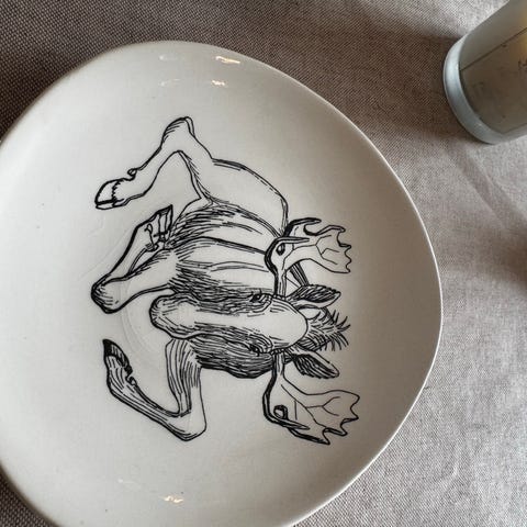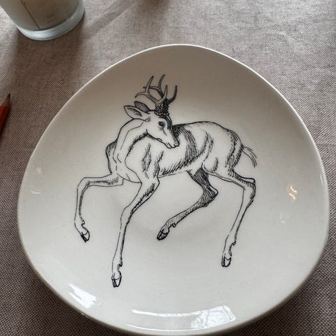Stavangerflint veggtallerken med originaltegning, motiv 4 «Giraffen».