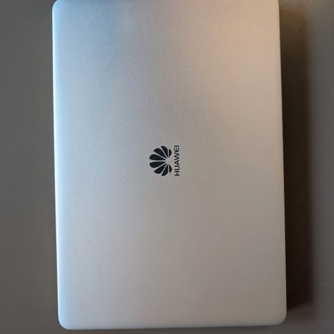 Bærbar PC-en har 14-tommers skjerm og et kompakt chassis i metallfinish. Tastaturet er i full størrelse med stor styreflate. Maskinen leveres med original lader/strømadapter, som vises på bildene.