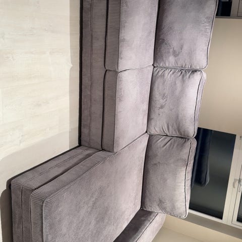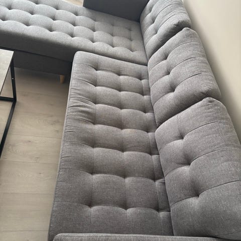 Gir bort en romslig og komfortabel hjørnesofa mot henting. Fin størrelse og nøytral grå farge som passer i de fleste hjem.