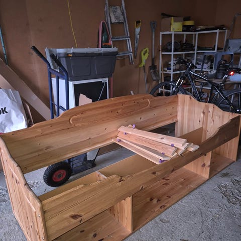 Madrass er to- delt; bredde 75 cm.