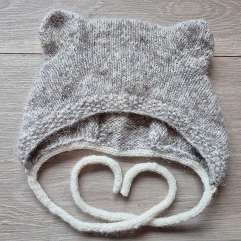 Deilig myk lue strikket i 100% ren merinoull, som ikke er superwashbehandlet. Den er strikket dobbel over panne og nakken, i tillegg til at øreklaffene er doble. Denne luen vil holde den lille god og varm!