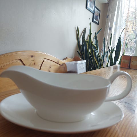 Porsgrund sausnebb i hvitt porselen. Klassisk, buet form med helletut og håndtak. Egnet til servering av saus og andre flytende tilbehør ved borddekking. Nøytral hvit farge som passer sammen med ulike serviser.