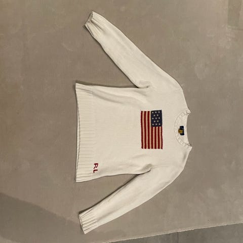 Selger denne populære Polo Ralph Lauren genser da den har blitt for liten. Det står at den er S, men vil si den passer bedre som XS. Har blitt brukt av min datter på 12-14 år, og passer om du er cirka i høyden 158-162 cm.