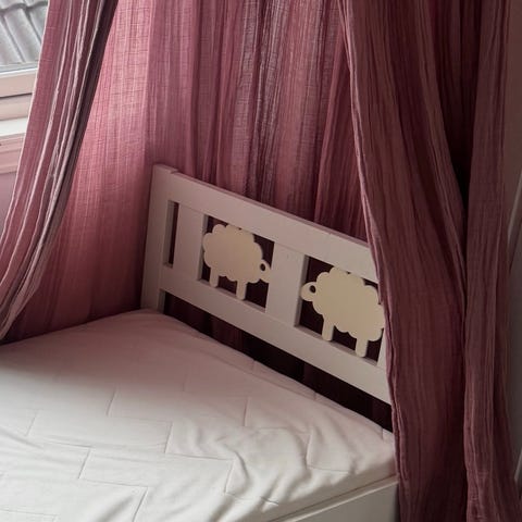Jollyroom sengehimmel i fargen støvrosa. Sengehimmelen er laget i bomull og er egnet til bruk over barneseng eller juniorseng på barnerommet. Gir en lun og avskjermet soveplass og kan også brukes som lekekrok eller lesekrok. Henges opp i taket over sengen etter behov.