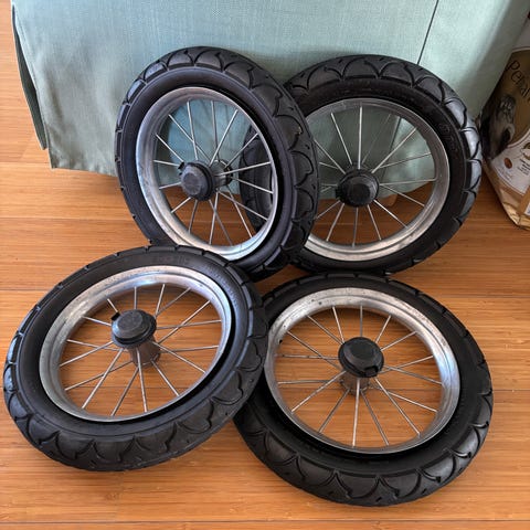 Har til salgs 4 emmaljunga hjul brukt. Noen steinene som har lagt hullene inni. Hjulene funker som skal. Selger pga bytte til luft hjulene.