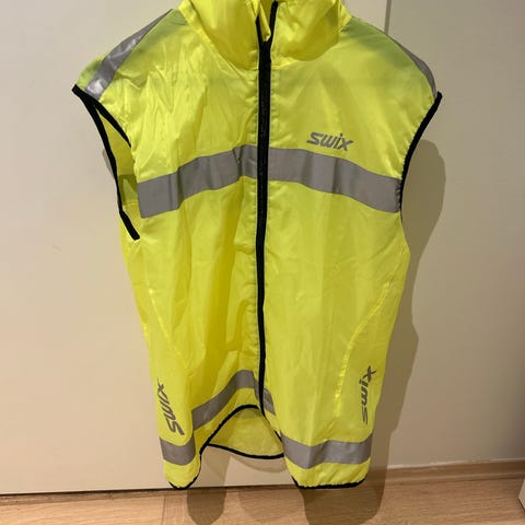 Vaude sykkelvest i svart. Lett og tynn vest med glidelås i front og elastisk kant nederst med Vaude-logo. Meshpanel i ryggen for bedre ventilasjon. Refleksdetaljer foran og bak for økt synlighet. Egnet som ytterlag over sykkeltrøye i kjøligere eller vindfulle forhold. Str M.
