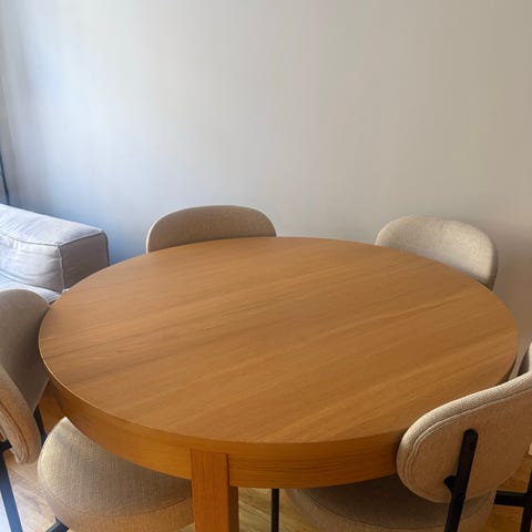Pent brukt kjøkkenbord med fire stoler. Kjøpt i 2025, nesten ubrukt. Ny pris; 3 397kr