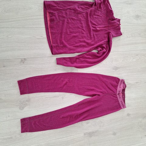 Ullundertøysett fra Nordheim i størrelse M; langermet overdel og longs i lilla farge. Plaggene består av en ullblanding med merinoull og syntetiske fibre. Egnet som innerste lag til ulike aktiviteter og hverdagsbruk der man ønsker et tynt og kroppsnært ullplagg.
