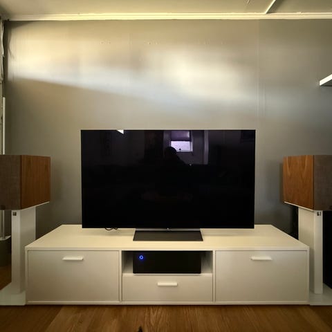 Leveres med strømledning og fjernkontroll slik det vises på bildene.