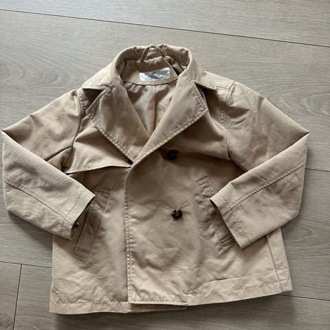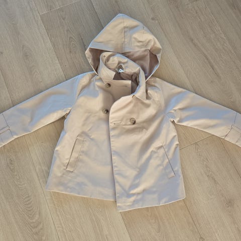 Cubus jakke for barn i størrelse 98. Jakken er beige og laget i polyester. Modellen er unisex og har hette, doble knapper foran og to frontlommer. Passer til hverdagsbruk.