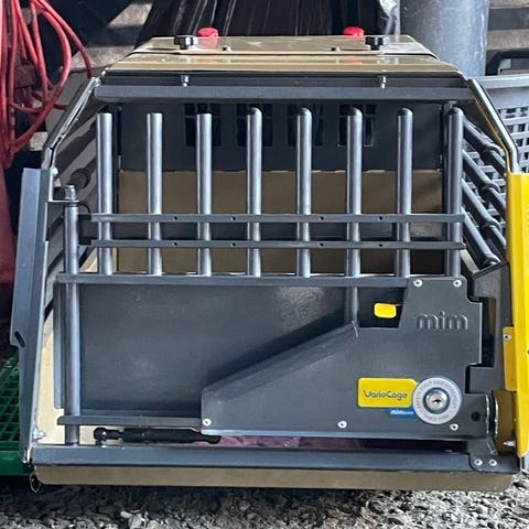 Kjøpt på finn i desember 2024. Solid bur med mye bruk igjen. Brukt til en eurasier hannhund. Passer fint til ID4, Tesla modell S.