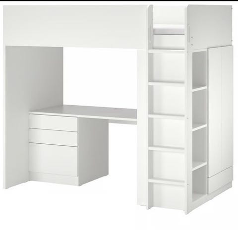 IKEA småstad loftseng med skrivebord og garderobe hvit