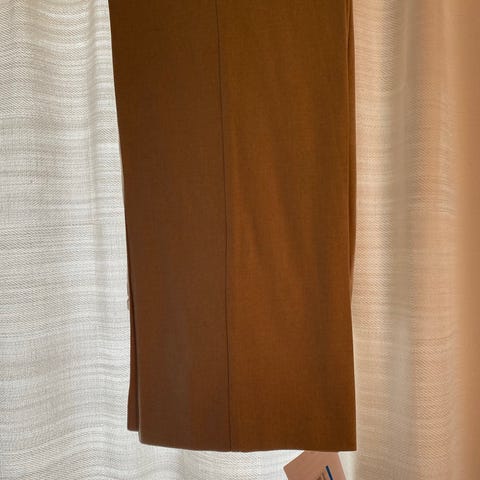 Sort bukse fra Vince, som ny. Materiale polyester, faller fint, god passform. Høyt liv, vidde 80 cm. Sidelommer, baklommer ikke åpnet, legg foran.