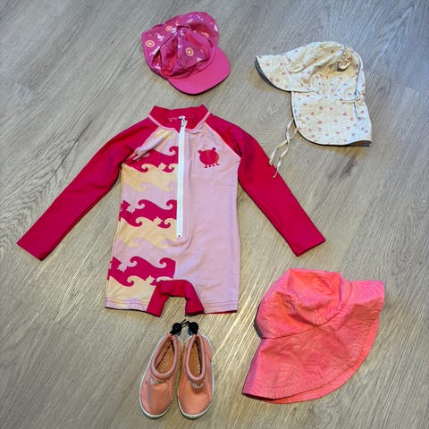 Badedrakt / uv drakt fra reima str 86, så fin som ny. Reflex badesko, godt og synlig brukt men feiler ingenting.