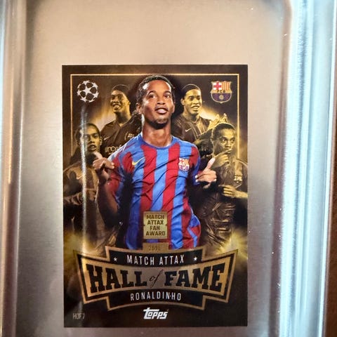 Selger et eksklusivt fotballkort av en av fotballhistoriens største entertainere, Ronaldinho. Kortet er fra Topps Total Football sin "Inferno"-serie, og er nummerert til 99 (#/99).