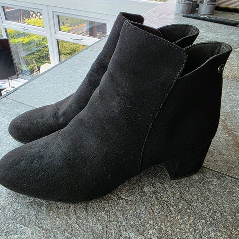 Tamaris støvler i størrelse 41. Ankelhøye støvler i svart farge med blokkhæl (6 cm) og elastiske partier i siden. Veldig myke og behagelige på foten.
