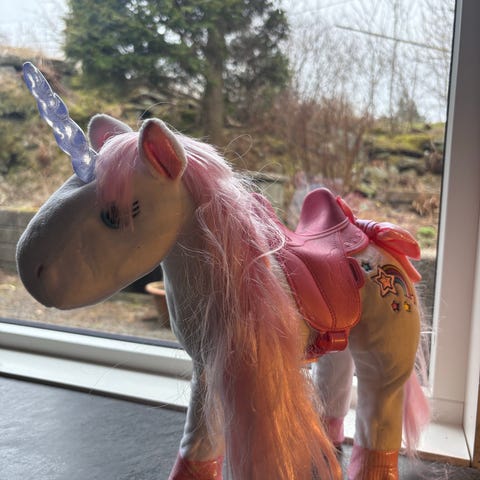 Enhjørningen kan gå med babyborn og lager lyd.