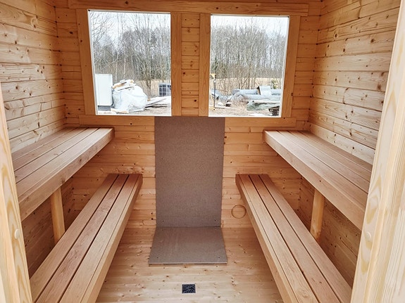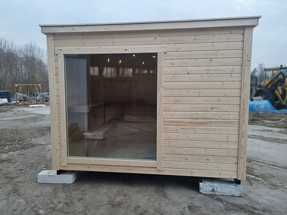 Badstuen er ferdig montert og klar til brukVi ordner transport til din adresse, men du må selv sørge for lossing.