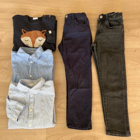 Gensere i bomull, svart pen jeans og en denim skjorte. Fint til hverdags og noe penere.