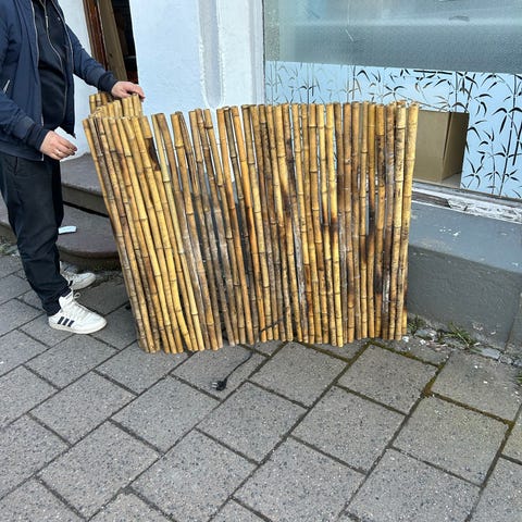 Bambus levegg i naturfarget utførelse. Egnet som skjerming eller dekor på terrasse, balkong eller i hage. Består av tynne bambusstenger bundet sammen til en sammenhengende matte/panel. Kan festes mot gjerde, vegg eller rekkverk etter behov.