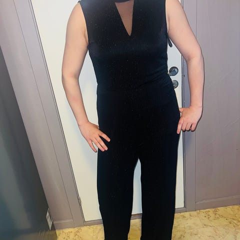 Denne modellen har en flatterende passform med markert midje og vide ben som gir en luksuriøs silhuett. Perfekt til både selskap, middag, jobb eller styling opp til fest.