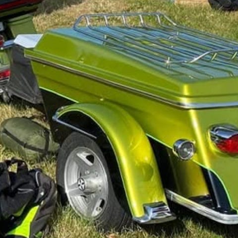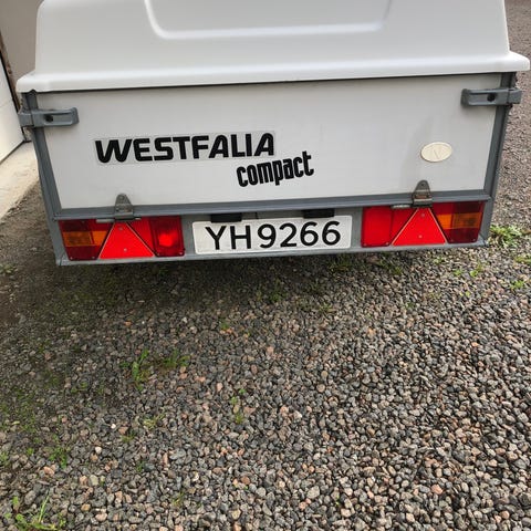 Denne er i god stand og pent brukt. Høyt bremselys i spoiler og bred lysrampe nede på støtfanger. Kjøleboks m/trekk foran på draget, steinsprut trekk foran på hengeren. Hengeren har torosjonsfjæring og er meget stabil og ligger rolig etter sykkelen.