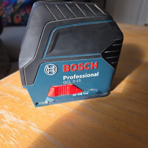 Bosch Laser vater med både linjer og prikk. Kan brukes både vannrett og loddrett. Innebygget boblevater for å sikre vatring. Medfølger justerbart stativ for å få den helt i vater, kan også dreies for å peke mot andre steder i rommet uten å flyttes.