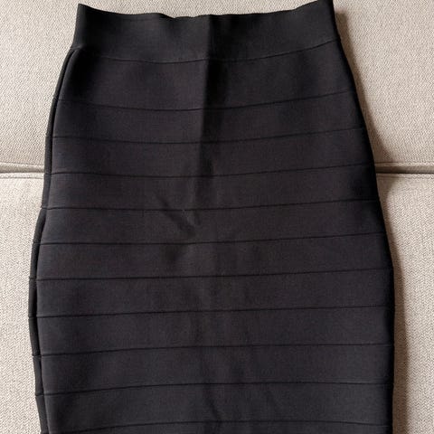 Zara Woman maxiskjørt i størrelse L, men liten I størrelsen, heller M. Skjørtet er grått med fiskebensmønster, polyester, viskose, ull.