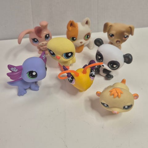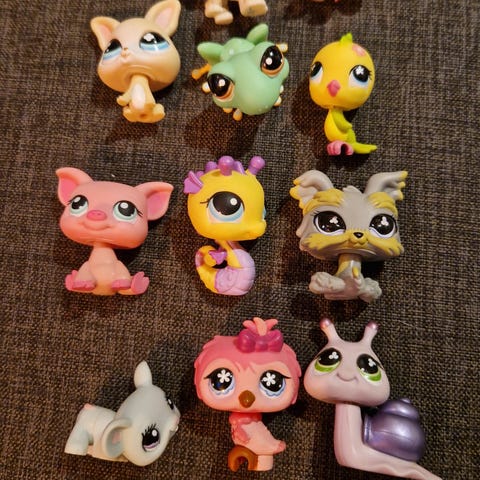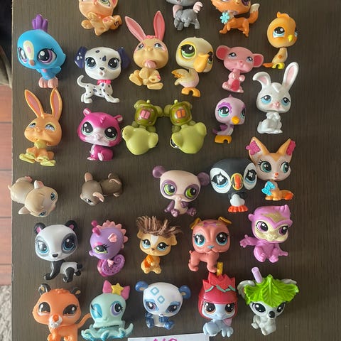 Littlest Petshop figursett med flere små dyrefigurer i ulike farger og varianter. Figurene er jevnt over i stand, men noen små bruksmerker er det. Se bilder.