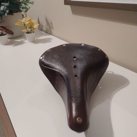 Selger et Brooks B17 Carved Short sykkelsete i brunt lær.