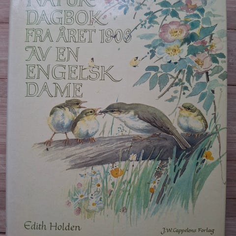Edith Holden: Naturdagbok fra året 1906 av en engelsk dame. Cappelen 1979. Boken er innbundet og har smussomslag, kjempefint illustrert med tegninger, pen stand.