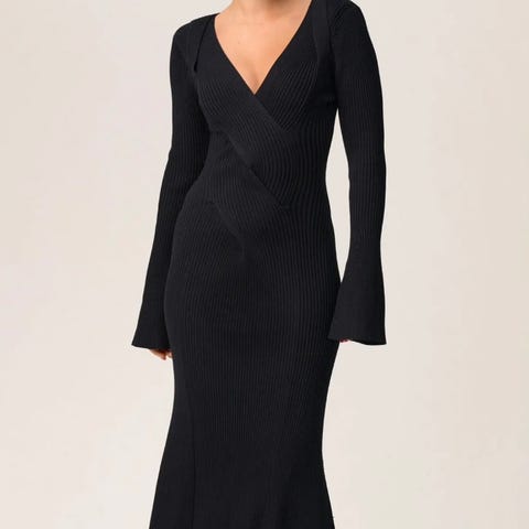 YAS hverdagskjole for dame i størrelse XS. Kjolen er svart og laget i viskose. Den har lange ermer, V-hals. Kjolen er ankellangt med volangkant nederst. Passer som hverdagskjole eller til enkle, pene anledninger.
