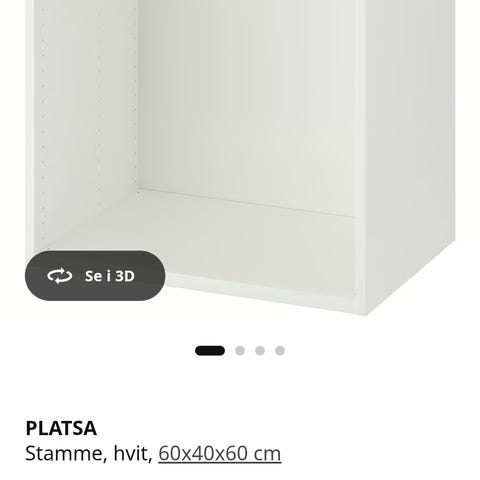 Selger et garderobeskap på 60 bredde og et underskap/benk på 80 bredde. Dette er fra platsa kolleksjone til IKEA, og kan bygges videre med flere møbler om en ønsker det. Selger alt til 1500kr samlet, evnt kom med bud om du bare er interessert i deler av det :)