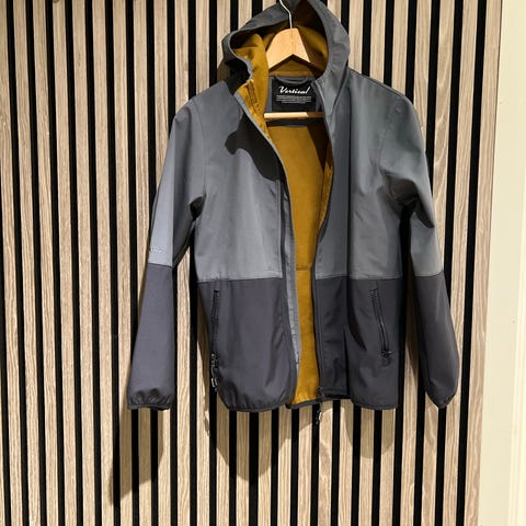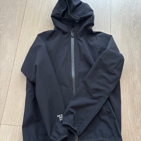 Jakken er pent brukt, men har fått noen hvite flekker på seg samt en rift på ermet. Se bilder. Ellers i god stand. God regnjakke for sport.