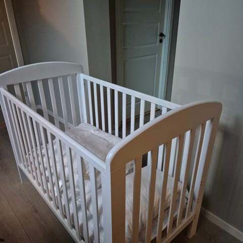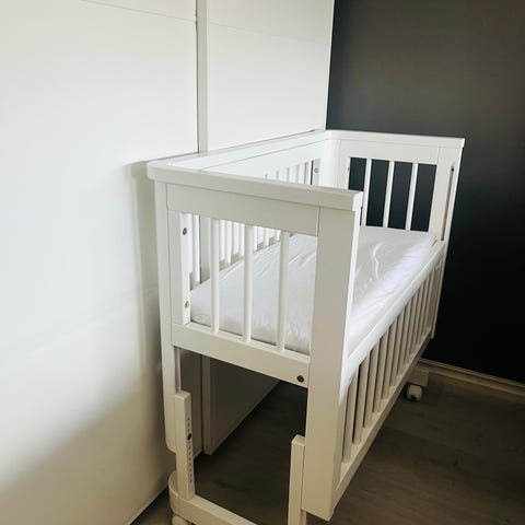 Pent brukt bedside crib. Den har minimalt med slitasje og masse bruk igjen. bredde 45cm, lengde 88cm, høyde 85cm. Høyde til øverste sengekant 50 cm(med madrass).