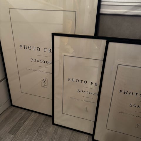 Selger 3 stk. svarte trerammer i størrelse 50x70 fra Desenio. De koster 429 kr på nettsiden, men selges for 200 kr her. Du kan kjøpe én ramme også.