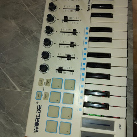 Arturia MiniLab MkII MIDI-keyboard med 25 anslagsfølsomme tangenter i kompakt format. Enheten har 16 roterende knotter, 8 trykkfølsomme pads, pitch- og modulasjonsstriper samt transportknapper. Farge hvit med sidepaneler i trelook. Tilkobles datamaskin via USB og fungerer som kontroller for programvareinstrumenter og DAW-er. Egnet for musikkproduksjon, hjemmestudio og mobil bruk.