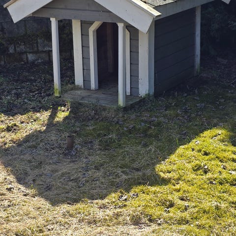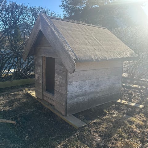 Godt brukt hundehus gis bort. Størrelse 84x74x70, brukt av husky/grønnlandshund. Egnet for utendørs bruk på terrasse eller i hage, avhengig av størrelse på hund og behov for ly og skjerming.