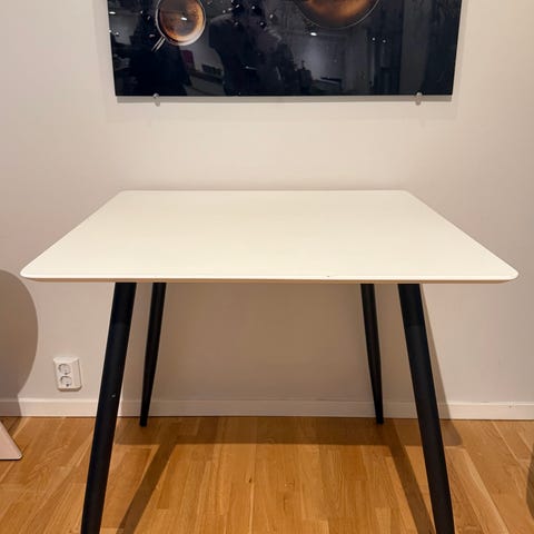 Selger et bruk spisebord, kjøpt på Skeidar april 2024 (modell: Palma spisebord - sortbeiset lakkert ask finér med stål understell). Bordet har et hakk på siden.