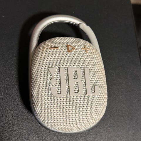Liten og kraftig JBL Clip 4. God lyd. Enkel å ta med (karabinkrok).
