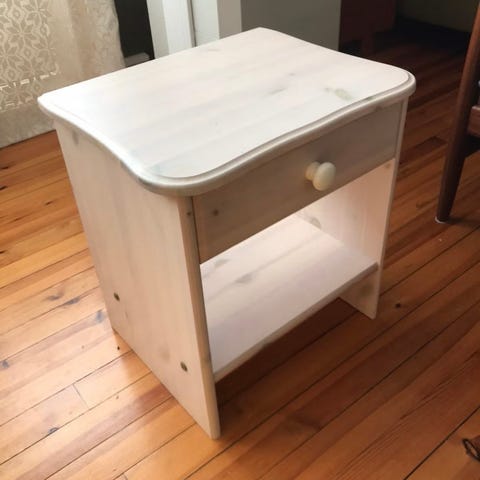 Møbelet er lakkert og har et tidløst, enkelt design som passer i de fleste rom – perfekt som nattbord, sidebord eller lite oppbevaringsmøbel.