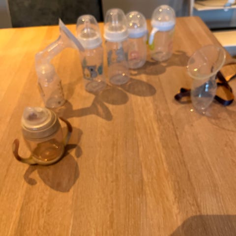 Tåteflasken er ny. Pulverdispenseren er synlig brukt.
