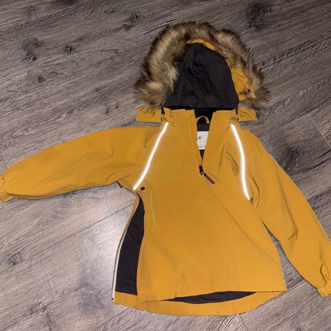 Gullkorn Anorakk for jente i størrelse 104. Jakken er mørk/Gammel Rosa og har hette. Materialet er vanntett og vindtett og jakken er forét. Passer til bruk i barnehage og uteaktiviteter i høst/vinter/Vår sesong. Noe lite synlige flekker som er usikker på om går bort i vask, men hellers ingen hull eller slitasjer.