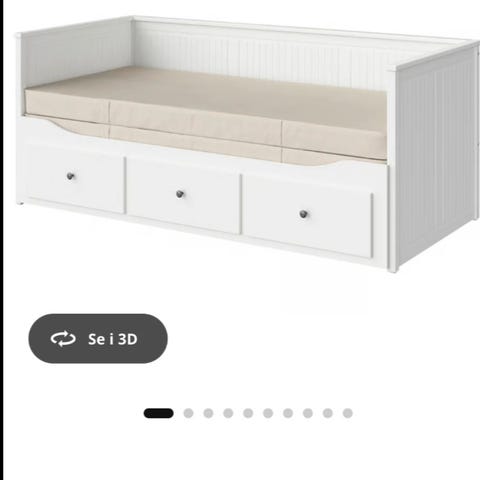 IKEA Hemnes dagseng med tre skuffer. Den har noen riper i lakken etter bruk. Se bilder. Dette kan muligens males, ellers er sengen hel og i fin stand! :-)
