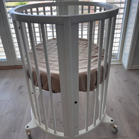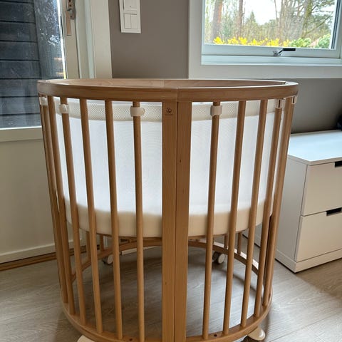 Lekker stokke seng til baby. Selges med utvidelsespakke slik at barnet kan bruke sengen lengre. Babyen vår har sovet på madrassen en gang og ellers i babynest. Nypris 8899,-