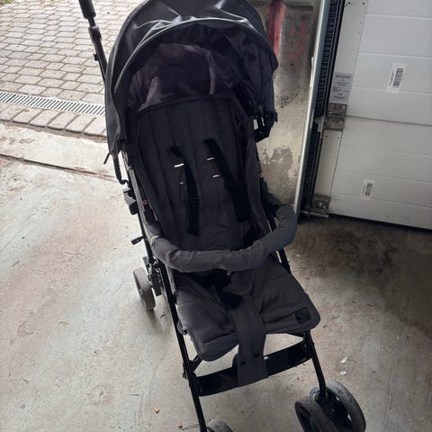 Suveren MacLaren paraplytrillle selges. Passer for barn opp til skolealder og funker utmerket som reisevogn. Ryggen kan slås ned i horisontal stilling med har utvidbar beinstøtte. Trillen er lett og manøvrere og klappes enkelt i sammen. 5-punkts sikkerhetssele med høydeinnstilling, låsbare svinghjul foran og fotbetjent parkeringsbrems.