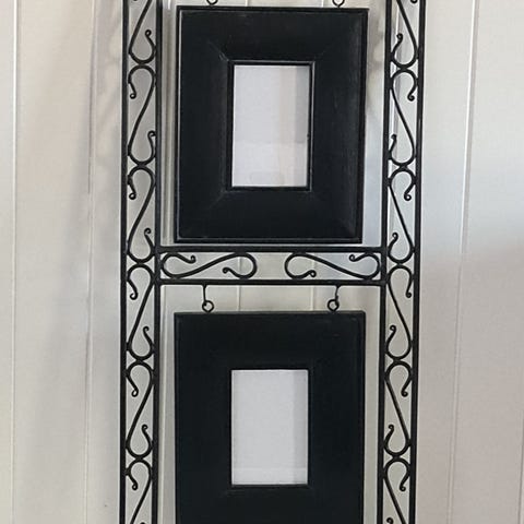 Dekorativt bokstativ i metall selges for 150 kr.