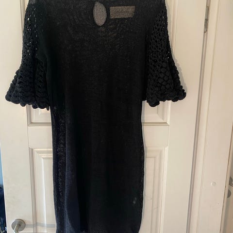 By Malene Birger hverdagskjole for dame i størrelse S. Kjolen er herlig dyp blå. Modellen har korte ermer og rund hals, og har et enkelt, rett snitt som passer til hverdagsbruk. Stoffet er mykt og faller lett langs kroppen. Egner seg godt alene eller med lag-på-lag, for eksempel med strømpebukse eller jakke over.